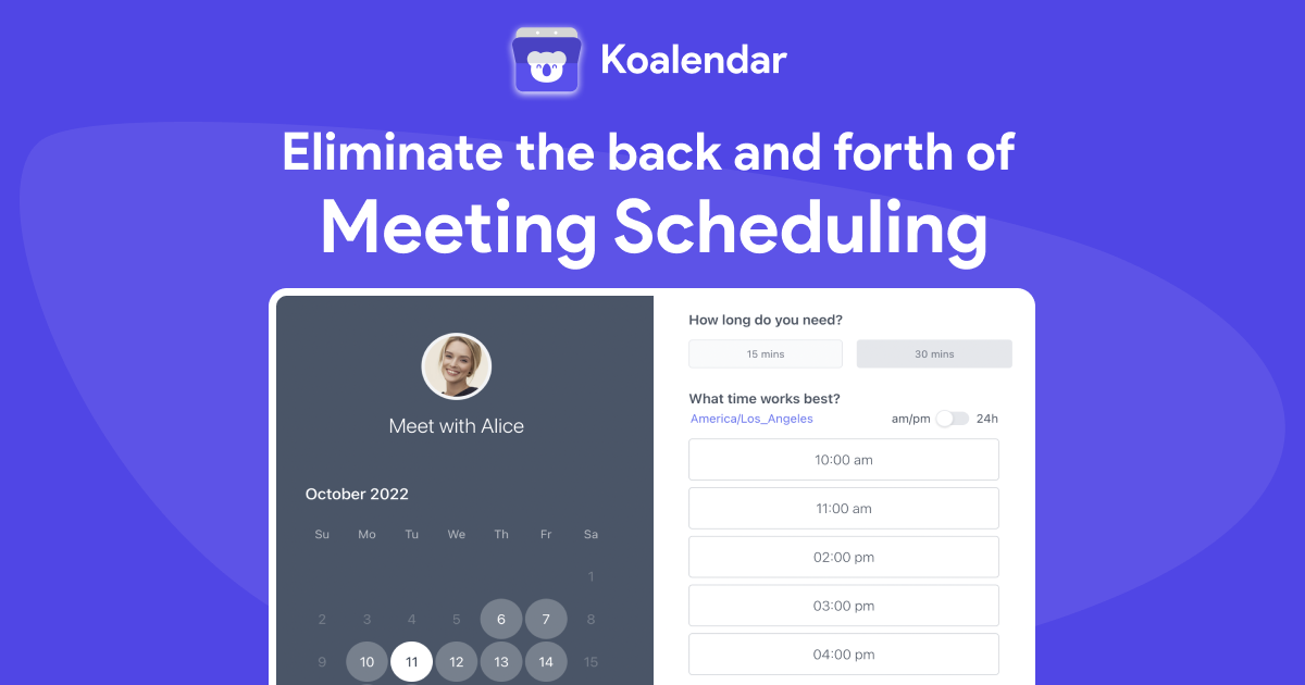 Have really enjoyed the flexibility of Koalendar. It is simple to use, clean to present and very easy to setup for Google Meet or Zoom.